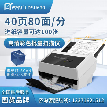 奧普思凱(OPSKY) 饋紙式掃描儀高清彩色雙面連續(xù)大容量自動進紙辦公設(shè)備發(fā)票文檔多介質(zhì)掃描 DSU620 掃描儀(40頁80面/分鐘)